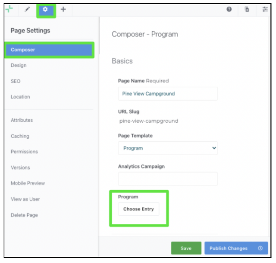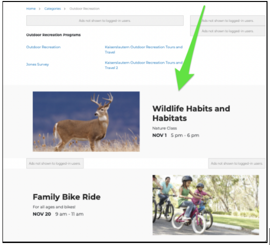 How to add a program page to a category page. For this example, we’ll be adding the Pine View Campground to show up in the Outdoor Recreation category and Recreation category. Before you begin, you’ll need to have the Program Page and Express Program entries already created.
